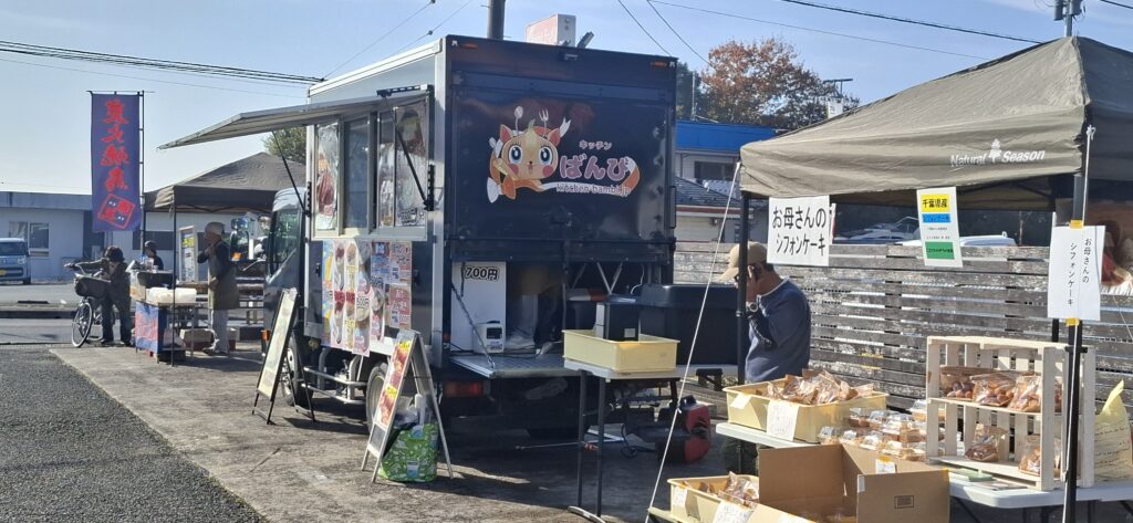 キッチンカーの香りに誘われ、コーヒー・お花・新鮮野菜の販売も大盛況。